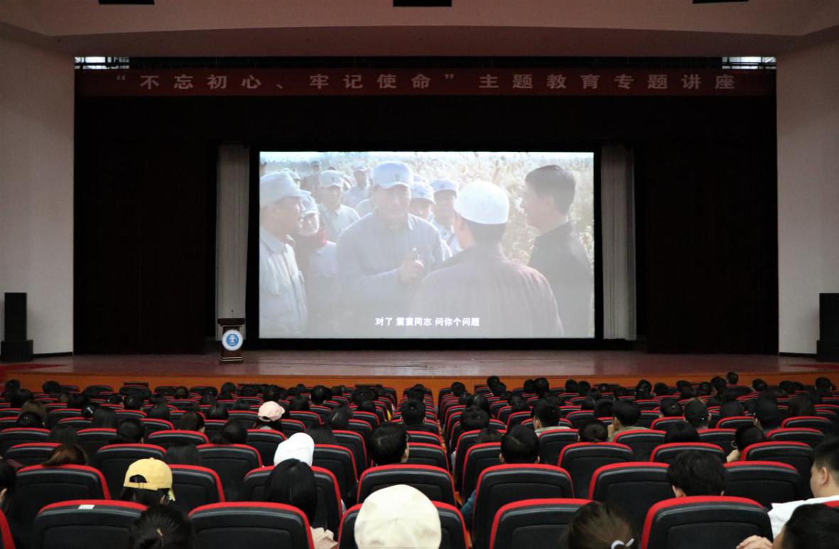 为深刻领会习近平总书记在“不忘初心、牢记使命”主题教育工作会议上强调的“中国共产党人的初心和使命,就是为中国人民谋幸福,为中华民族谋复兴”这一主题,讲座开始前,我校组织在场师生共同观看电影《英雄黄骅》中的精彩片段,使大家了解在20世纪40年代燃烧在燕赵大地上的抗日烽火,了解英雄黄骅的英勇事迹。