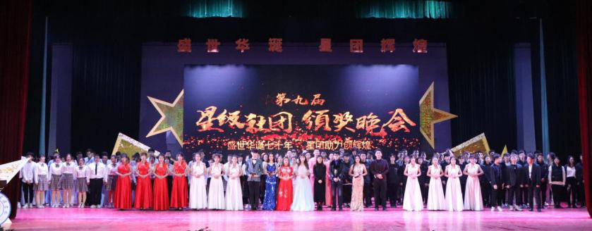 11月22日晚7点,我校隆重举办以“盛世华诞七十载·星团助力创辉煌”为主题的第九届星级社团颁奖晚会,广大师生相聚天佑会堂,共享一场社团文化的视听盛宴。