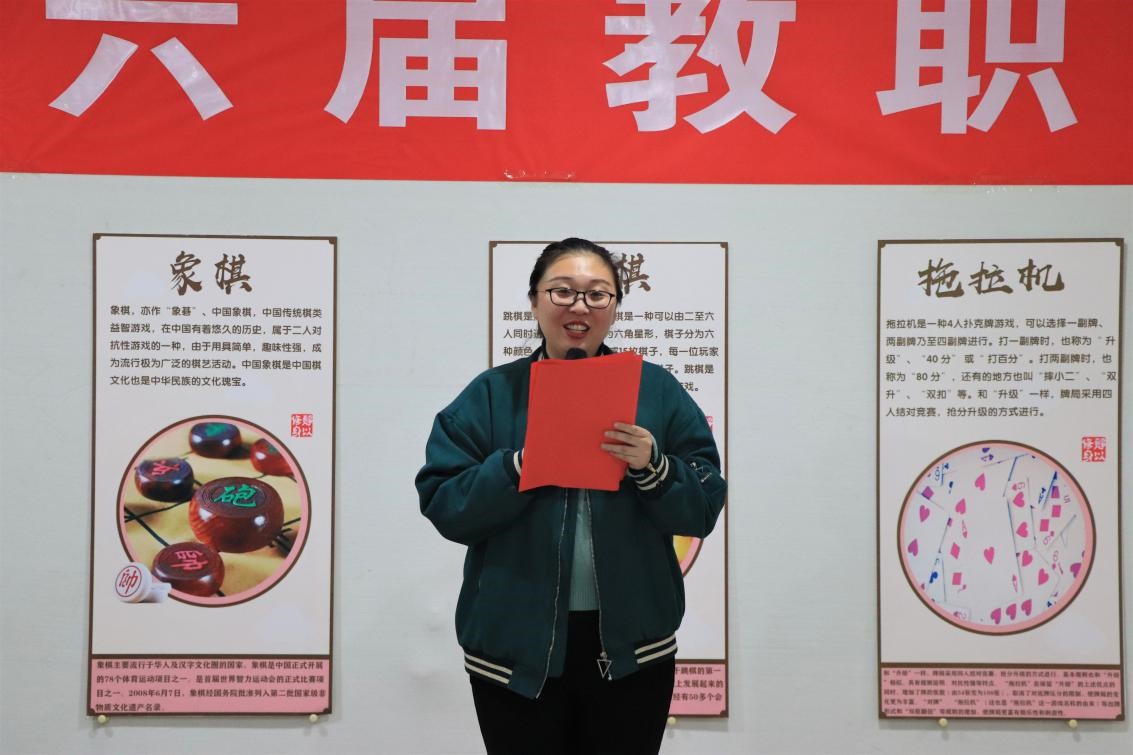 11月25日--12月9日,我校工会举办了第六届教职工智力运动会。校工会每年举办教职工智力文体活动,让教师们在繁忙的工作之余,享受别样的趣味,增强同事之间的交流与友谊。今年的智力运动会分为象棋、五子棋、跳棋等六项比赛,报名教师多达一百余人。