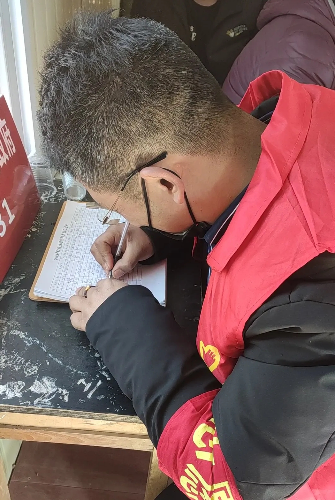 在执勤的时候,贾启华在寒冷的室外一站便是5、6个小时,“很多次在登记车辆人员的信息时,我都冻得浑身打颤、手握不住笔,但一想到身边的同事还在奋战坚持,一线的工作人员还在为我们负重前行,即使再苦再累,我也会坚持到底!”