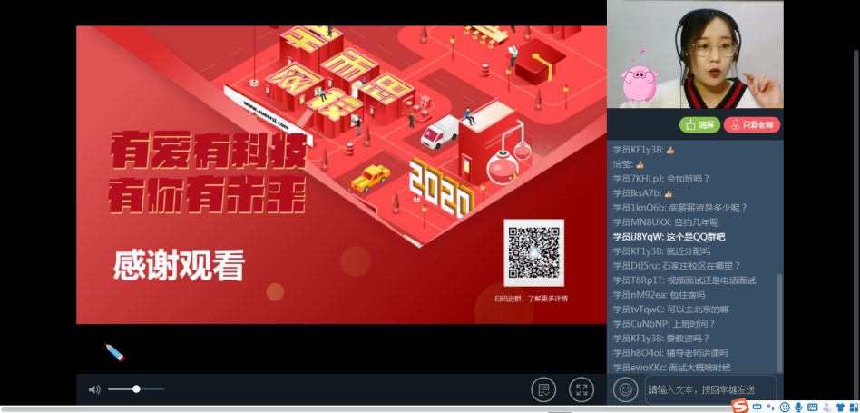 首场空中宣讲会的就业信息网招聘信息浏览量6358次,学生报名预约337次。整场宣讲会近1个小时,130余人同时在线观看直播宣讲,共投递简历130份。北京学而思教育科技有限公司宣讲人介绍了公司的整体情况,也说明了今年的招聘计划、员工晋升渠道等。答疑环节中,我校学生积极互动,关于工作时间、工作内容、工作地点、晋升渠道等方面提出问题,宣讲人耐心做出解答,给予学生未来职业规划的指导与建议,直播间气氛活跃。