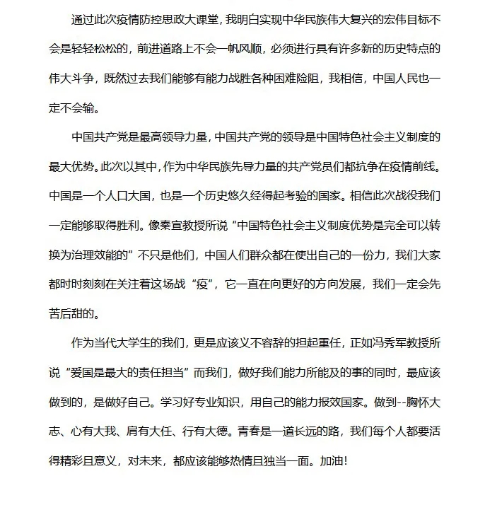 我校学生就此次疫情防控思政大课是一堂有高度、有深度、有温度的思想政治教育课,对他们的影响极深。