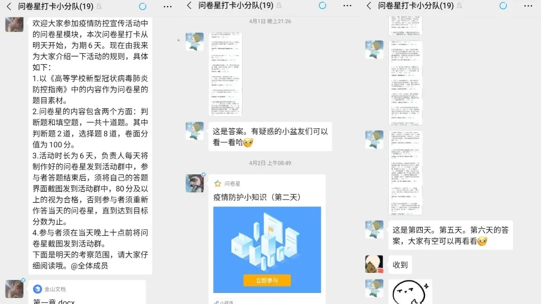 化学工程系学生会组织各班班长积极配合完成填写报名表工作,通过语音段落阅读和问卷星两种形式,倡导全系学生阅读《高等学校新型冠状病毒肺炎防控指南》。