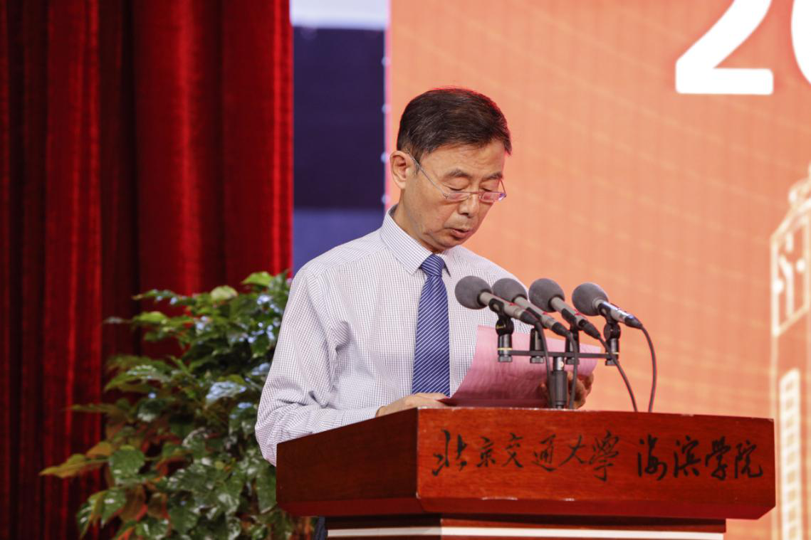 北京交通大学海滨学院党委书记魏旺强宣读2020届优秀毕业生表彰决定。