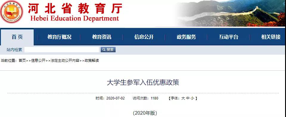 最新!河北2020年大学生参军入伍优惠政策公布!