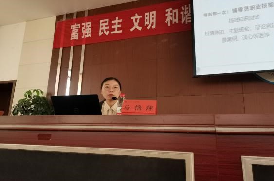 安全工作处曹智就“新形势下辅导员如何做好学生安全稳定工作”进行讲授。招生就业处杜燕着重讲解了大学生就业指导和服务工作。