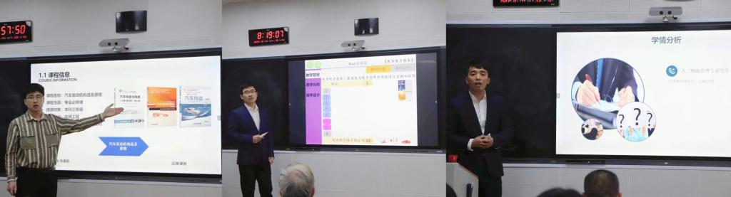 现场比赛包括说课、课堂展示、教学设计创新汇报以及回答评委提问四个环节,共历时8个小时,12位教师各自从所授课程出发,介绍课程总体设计、思政元素融入、信息技术手段运用、课程创新成效等方面,展示了以“学生中心”的教育理念和“两性一度”教学内容,将价值塑造、知识传授和能力培养融为一体,并立足于课堂教学真实问题,提出了解决问题的思路与方案,凸显各自教学的创新点。