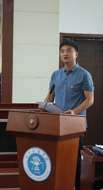 河北省优秀教师、通识教育学院物理教研室丛红璐教授代表老教师发言。他从分享个人经验的角度指出,一名好老师要具备良好的师德、扎实的专业知识;要讲好课,也要积极参与教改、科研工作。他衷心地祝愿新入职教师充分利用学校提供的平台展示自身的才华,同时邀请新入职教师一起共同探索教育新边界,共同促进学生的成长与发展。