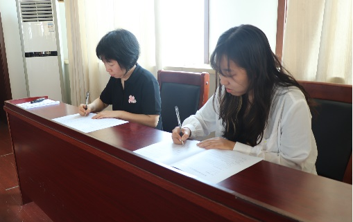 随后,举行了新老教师代表结对子仪式,经济管理学院新老教师代表于自秀、郭媛老师,轨道交通学院新老教师代表郭银帅、杨润广老师,计算机与信息技术学院新老教师代表魏树森、尹鸿峰老师分别上台签订《沧州交通学院新老教师结对子协议书》。